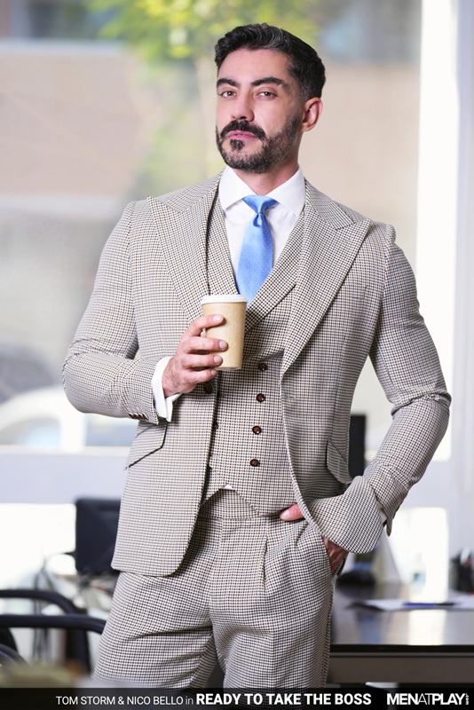After considerable deliberation, Nico Bello has decided to terminate Tom Storm’s employment with the company. Nico calls Tom into his office, where he shares the bad news. The decision has been made, and there is nothing else to discuss. Tom’s face turns to surprise as he shares with his boss that he honestly did not see this coming. He asks Nico if he is sure there isn't ANYTHING he can do to change his mind. The sexy green-eyed Tom stands and slowly walks behind Nico’s desk and whispers, “And I do mean … anything… Sir!” The boss remains seated and unnerved, finally responding, “It will cost you A LOT. Paperwork has already been filed.” Tom has no problem having sex with his boss in exchange for keeping his job… the only question that remains is… “So what will it be..? You fuck me or I fuck you?” The boss and employee kiss passionately, Nico’s cock hardening under his trousers until Tom finally releases it and begins sucking the Argentinian's uncut cock. Next, Nico wraps his lips around the Russian cock and then eats and fingers Tom’s smooth hole. In a game of power, the Boss should always dominate - and Nico chooses to fuck his young employee raw. But, power doesn’t always mean topping… and Nico is soon on his back, taking Tom’s young cock up his ass. Excited at fucking his boss, Tom blows his load deep inside Nico, who can feel Tom’s warm cock spasm inside him. Fucked and creampied, Nico is finished off with a handjob that milks him dry too. Tom was ready to take on his boss, and now he can get back to work!