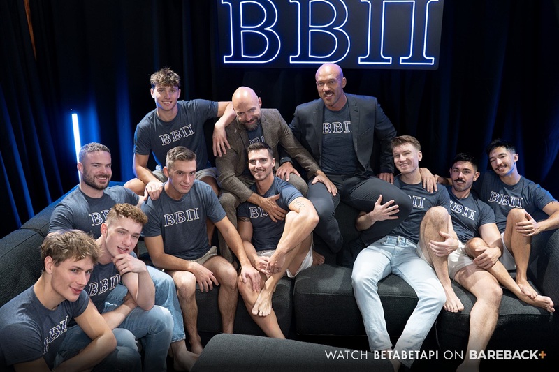 Jaxx was texted to return to the frat house on Saturday at 9pm. Upon arrival, Rocky escorted Jaxx to the center room downstairs where he was introduced to a large group of the fraternity with alumnus Adam Snow sitting in the middle. Some of them he had met before, some were new to him. Adam said, “Let’s show you what brotherhood is all about.” Jaxx was instructed to get up on the ottoman, when someone spoke up, saying, “Let’s get him naked.” He was so horny, his cock hard, he was ready for man on man group sex. Once nude on all fours, men were surrounding his face with cocks to suck and others were lining up to rim his ass. Someone started rimming Jaxx, but he didn’t know who or care. He was busy deep throating cocks, that is until Adam stepped up. At first, he was able to deep throat Adam, but when he was fully hard, he couldn’t get it all in along with his girth. Jaxx thought to himself, I am going to conquer that one day. Meanwhile, after receiving multiple ass eatings, Smith Sterling shoved in first, fucking Jaxx. Second to thrust in was Rocky. His huge cock opened him up wide while he was being spit-roasted by others, including Adam. Jaxx was fucked deep by all, Rocky and Adam leading the charge, opening him up. The happy frat brother Jaxx’s noises were so loud that windows would have rattled had they not been in a basement. Since there were more tops needing a hole to fill, two other brothers bottomed as well, Cyrus Stark and Christopher White took poundings by various brothers until their holes were happily filled. Jaxx, laying on his back, got another visit from Rocky, plowing deep inside his hole until injecting his seed. By the end, all the brothers enjoyed a sweaty, cum filled, gay sex extravaganza, all wondering whether they could keep a schedule of fun gatherings coming frequently.