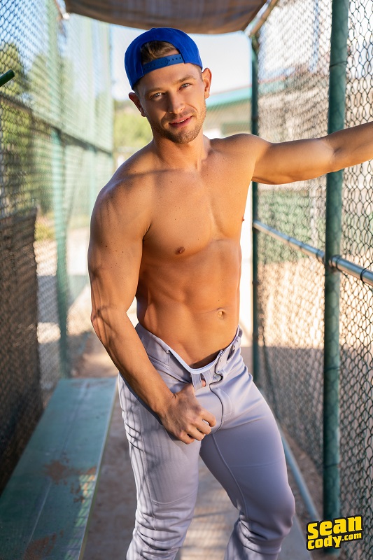Cuties Deacon and Riley take off their shirts and lace up their cleats for a trip to the baseball field. Deacon chokes up on the bat, teasing, "Want me to hit it hard or am I gonna be hitting one soft?" Riley shoots back "I'll make it easy for you. Promise," before tossing a beautiful pitch. When these guys get back home, though, it's Deacon who's pitching as Riley sucks his big cock and hops on top for a ride. These muscular studs try out a super athletic planking piledriver before Deacon cums all over Riley's cock, then licks it off!