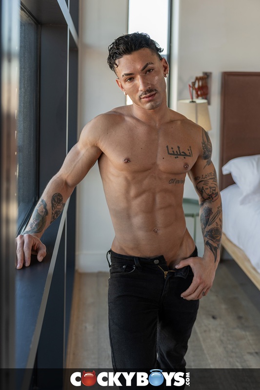 Alex Kof and Siren Santiago generate such passionate heat that they exceed the usual top-bottom dynamic. Siren melts as Alex feels him up, twists his pierced nipples and rims him, and though Siren sucks him, Alex is in charge. He lays Siren back to suck and eat him out then fuck the vocal bottom with plenty of sexual gynmastics that not confined to the hotel room bed. Siren lifts himself for a pounding before Alex fucks him in mid-air, plows the limber lad against the window, and gets blown again. He then goes all out as he pounds Siren on his back, fucks him mid-air fuck again, then drills him in bed every which way. Eventually Alex fucks a load out of Siren, then shoots over ripped abs, and after so much passionate kissing, they end with sweet sensuous kisses.