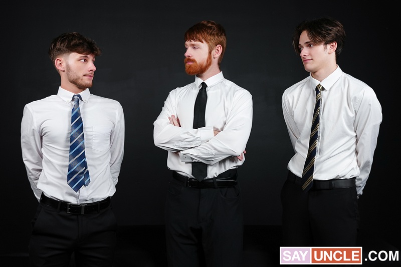 Elders Archer and Dex are slightly anxious about their initiation rite. They’ve heard all kinds of stories surrounding President Red, the man in charge of their ceremony. Nervous yet willing to give everything to be part of the mission, the two boys follow Big Red’s lead. After removing their earthly clothes, the young elders fall on their knees to worship the President’s dick, a key moment of the ritual in which they show their true colors and their eagerness to become part of something bigger than themselves. Tasting the forbidden fruit of sin is part of the ceremony, and the boys respect every step of the way, putting their tongues to the President’s service. The final challenge involves penetration–an act completely off limits with the outside world, but secretly reinforced in certain sacred ceremonies such as this one.